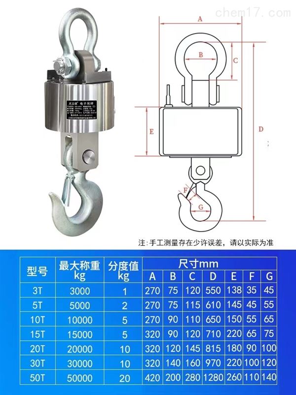 ④:配有无线遥控器,20米范围内可控制吊秤的置零,查询称重记录和关机等功能;