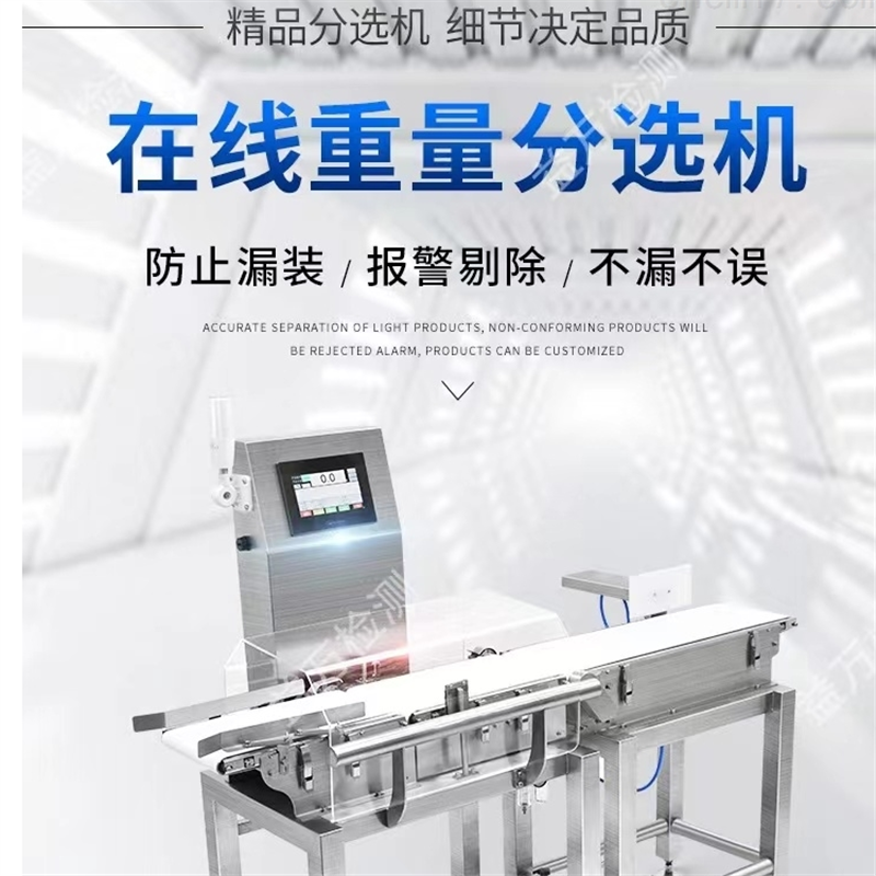 检测精度:±0.1g(检测精度受产重量、产尺寸、运送方式、工作环境等影响)
